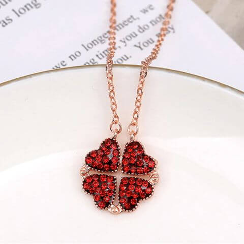 Magnetisch ontwerp zodat de ketting kan worden opgevouwen tot een klavertje vier.