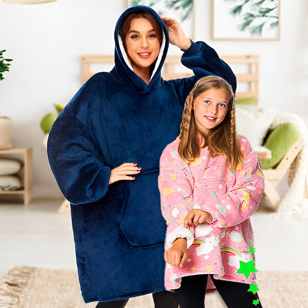 Comfortabele gezinsbundel 1+1 GRATIS: Hoodie en deken in één | HOODHUG