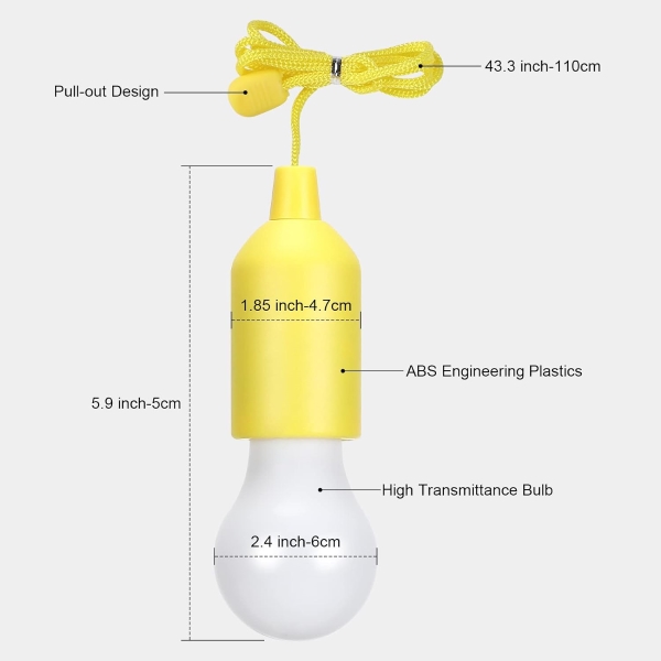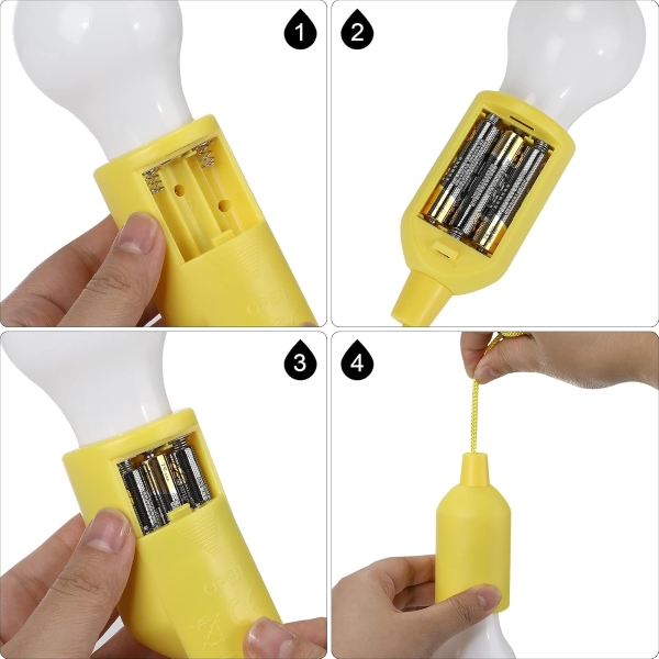 4 LED-hangkoordlampen, ontworpen voor zowel binnen als buiten. Deze lampen werken op batterijen en hebben een handig trekkoord dat is aangesloten op de lichtschakelaar. Deze koordlampen zijn perfect voor het verlichten en decoreren van ruimtes zoals garderobes, garages, tussenverdiepingen, achtertuinen, veranda’s en trappen, en zijn ideaal voor elke omgeving die extra verlichting nodig heeft.