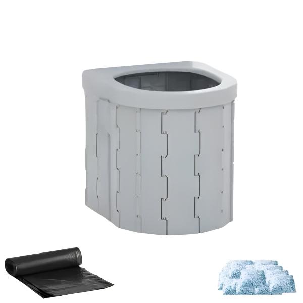 Dankzij het inklapbare ontwerp en de bijbehorende tas is dit toilet gemakkelijk overal mee naartoe te nemen en past het zelfs in een klein voertuig.