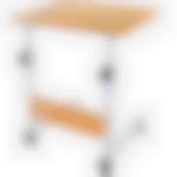 De tafel op wieltjes kan gemakkelijk van de ene naar de andere kamer verplaatst worden en past zich aan de behoeften van de betreffende activiteit aan.