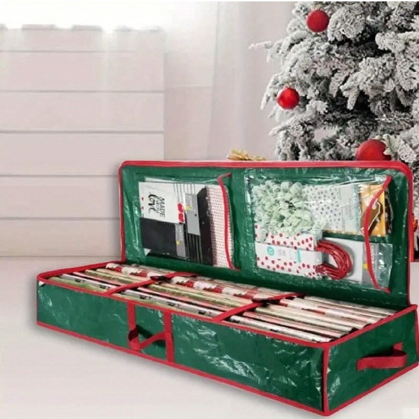 In deze tas met voldoende ruimte kun je al je inpakpapier voor de feestdagen opbergen, zodat je alles op één plek hebt en er gemakkelijk bij kunt tijdens drukke feestperiodes.