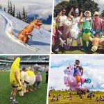 Dit opblaasbare kostuum is ontworpen voor volwassenen van 150 cm tot 190 cm, dus bijna iedereen kan meedoen.