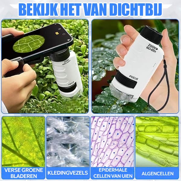 Verander alledaagse momenten in opwindende leerervaringen. MINISCOPE onthult de verborgen details van bladeren, insecten en huishoudelijke voorwerpen, waardoor kinderen worden aangemoedigd om de wereld anders te zien en nieuwsgierig te blijven.