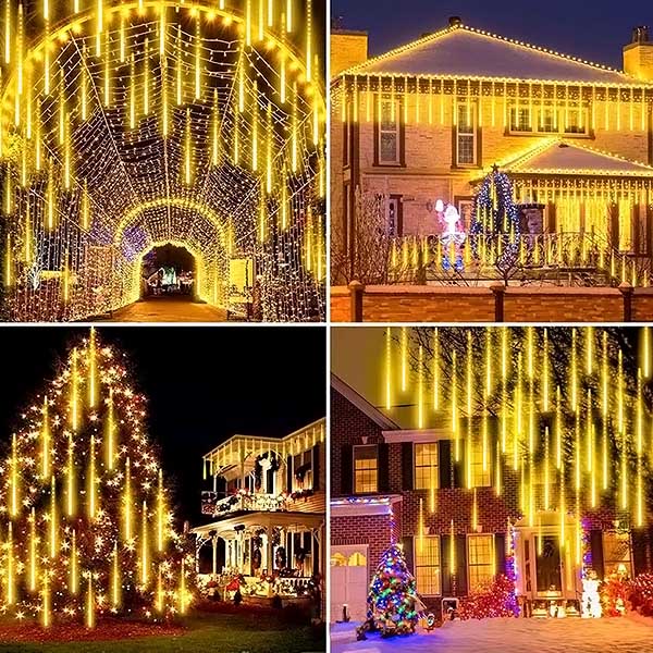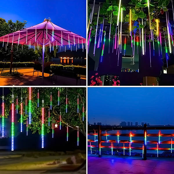 Meteorenregen Effect met romantische esthetiek: Led meteor douchelampen, het licht van elke lamp gaat aan en uit een voor een in volgorde en snel net als meteorietenregen of vallende sneeuw in de nachtelijke hemel, erg mooi.