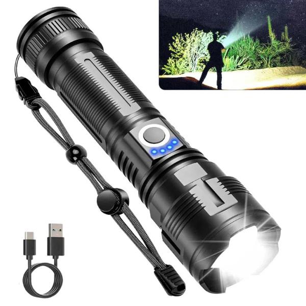 De duurzame oplaadbare batterij zorgt voor langdurig gebruik, zodat de zaklamp urenlang kan werken.