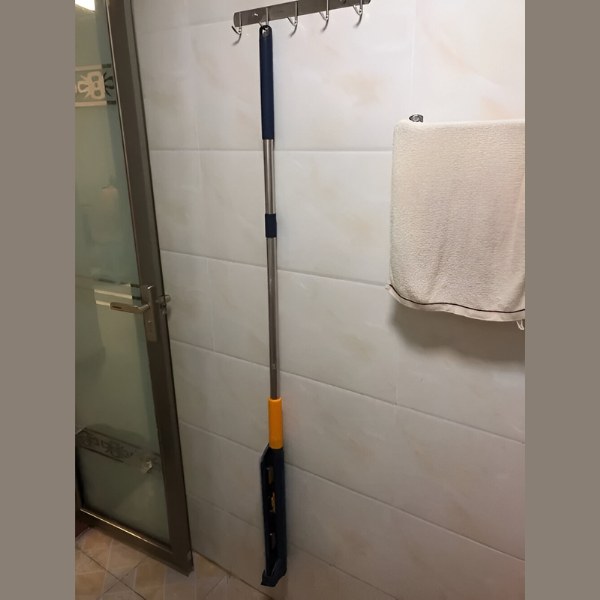 Het compacte ontwerp van de dweil maakt het mogelijk om hem verticaal op te hangen wanneer hij niet wordt gebruikt, waardoor je waardevolle opslagruimte bespaart. Hang hem aan de muur van uw badkamer of wasruimte, zodat hij uit de weg is, maar altijd klaar is voor gebruik.